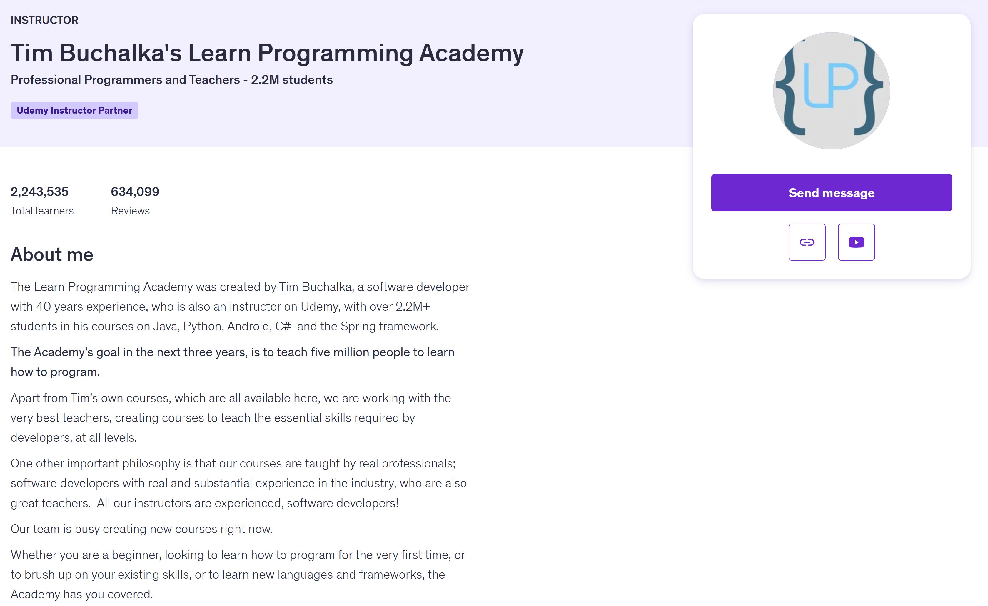 With over 2,243,000 students and close to 634,000 reviews on Udemy, the academy’s mission is simple: to make a difference in our students lives by helping them become software developers. And with Tim, having been voted as one of the top 10 instructors on Udemy it’s clear that we’re well on the way to achieving this goal!